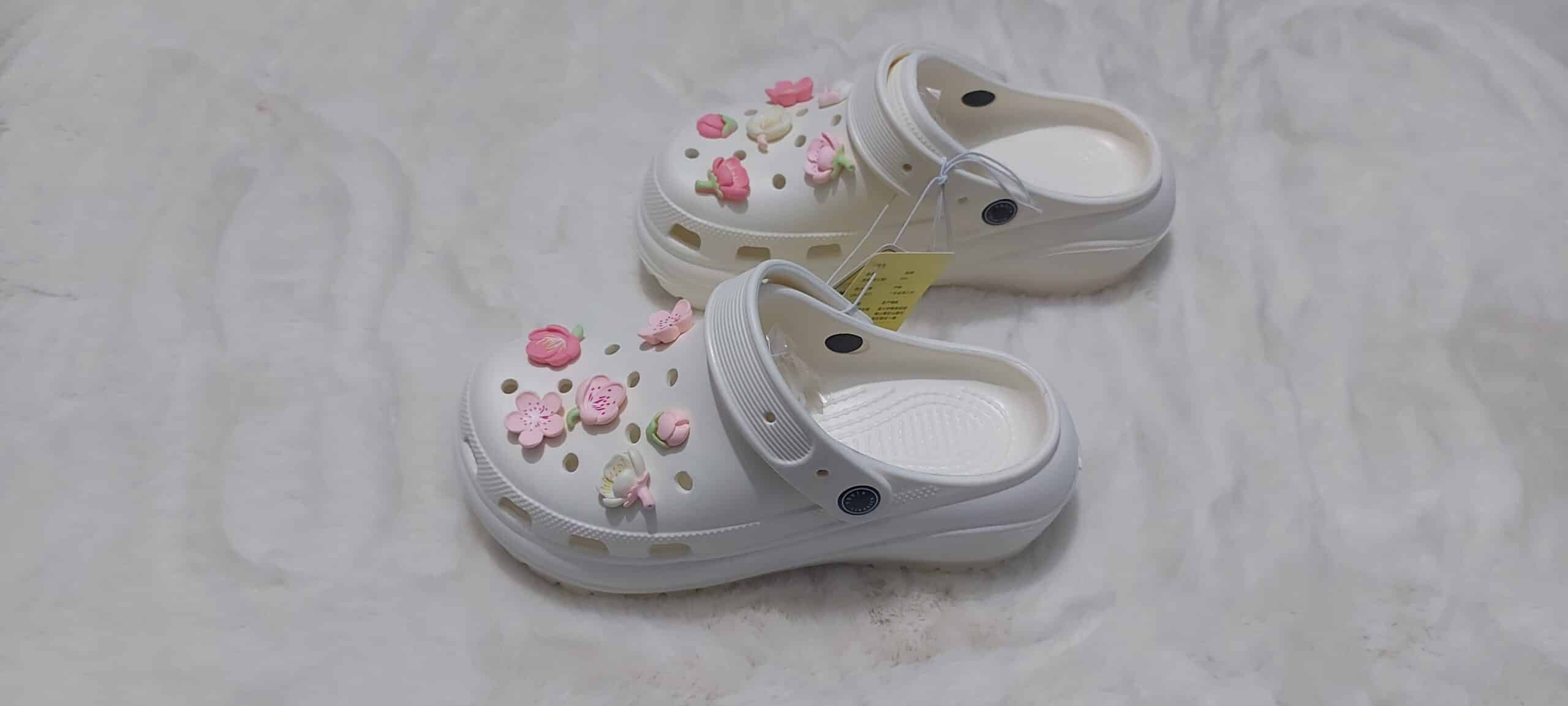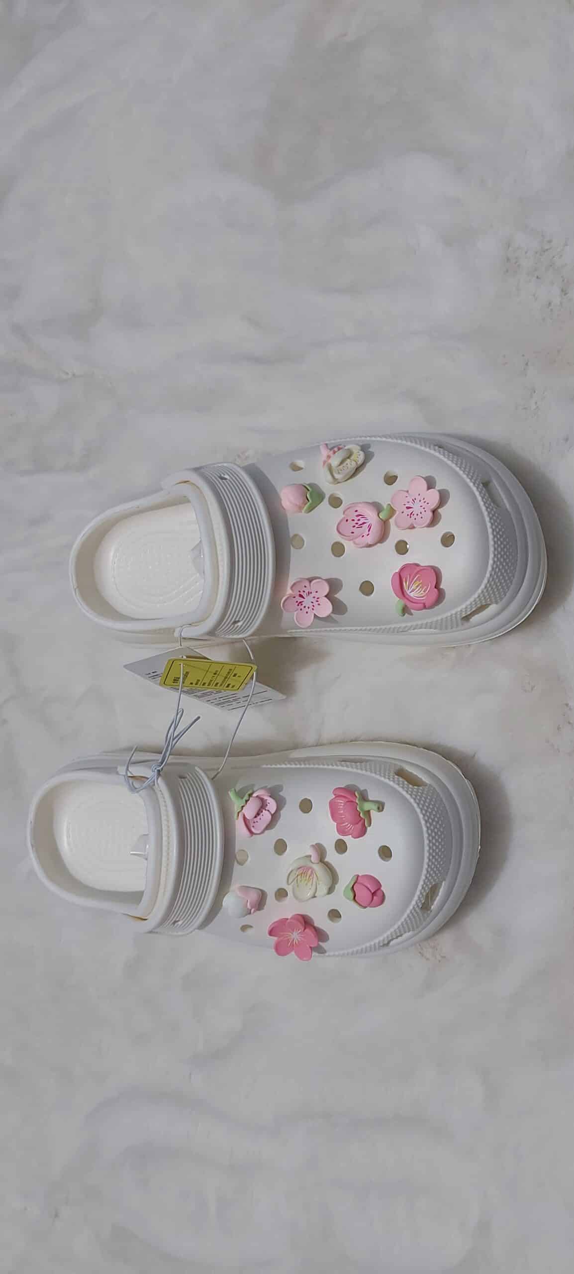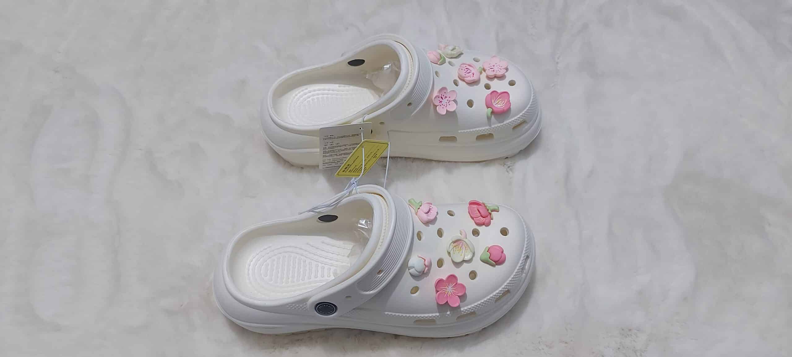 Ladies High Hill China Clogs Cream Color- Flower Charms In Bangladesh